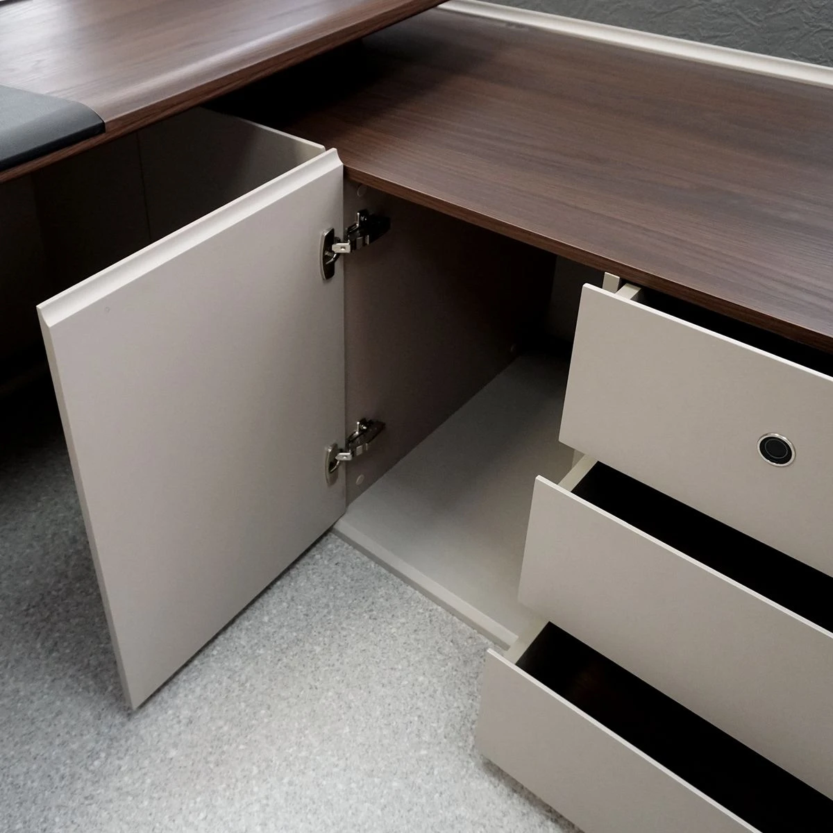 Двери: МДФ; тонированное стекло в алюминиевой рамке